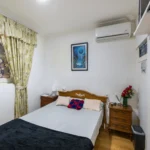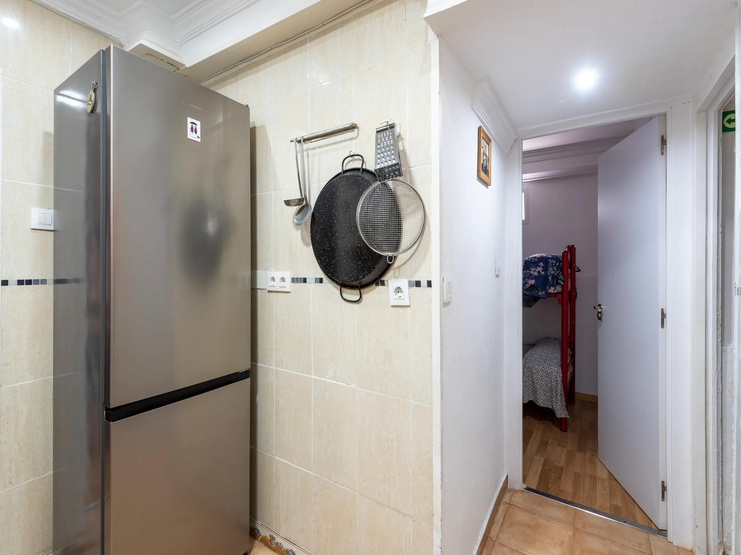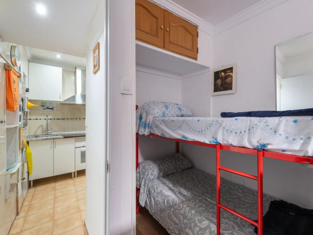 Dispondrás de un armario de madera para organizar tus pertenencias, así como una mesita de noche con lámpara, ideal para leer antes de dormir. Suelos de madera y una decoración sencilla crean un ambiente cálido y tranquilo. Es la opción perfecta si buscas un espacio privado, práctico y a un precio excelente.